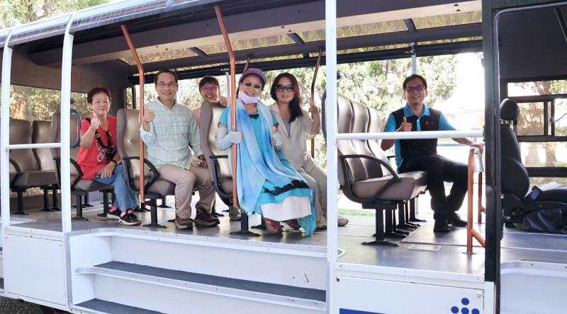 圖:搭乘裕隆汽車公司自製的電動遊園車!(這款車沒有在賣喔!)