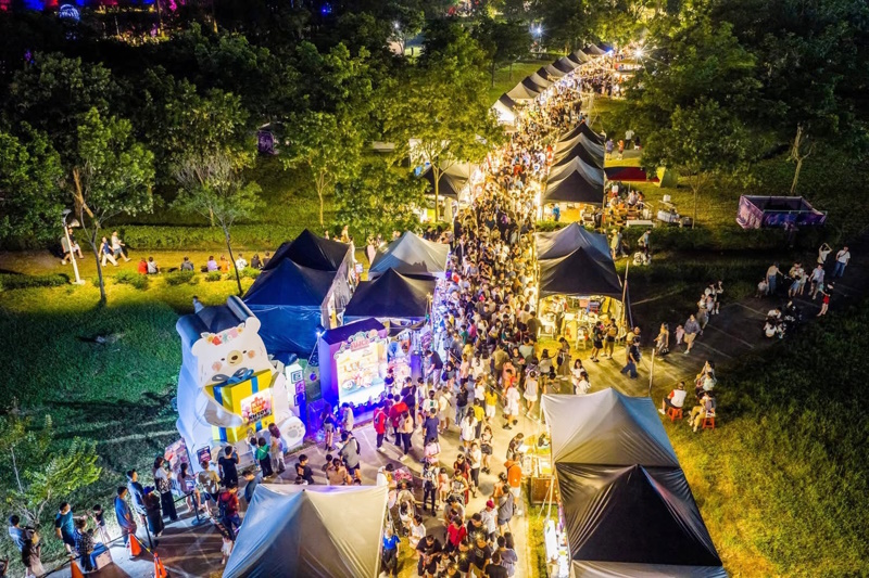 今年光織影舞以迪士尼經典動畫《愛麗絲夢遊仙境》為主題,展區設計兼具白天與夜晚之美。白天陽光灑落湖畔,巨型愛麗絲氣偶倒映水中,湖光與藍天構成夢幻景致。遊客近距離欣賞裝置藝術的細節與巧思,與巨型角色、奇幻花園及造型燈飾合照,感受童話場景的比例與驚喜;入夜後燈光亮起,整座北香湖化身為光影樂園,從30米沉浸光環隧道、9米高愛麗絲主題裝置,到湖面閃耀的「光月疊影」,每一幕都令人驚嘆。