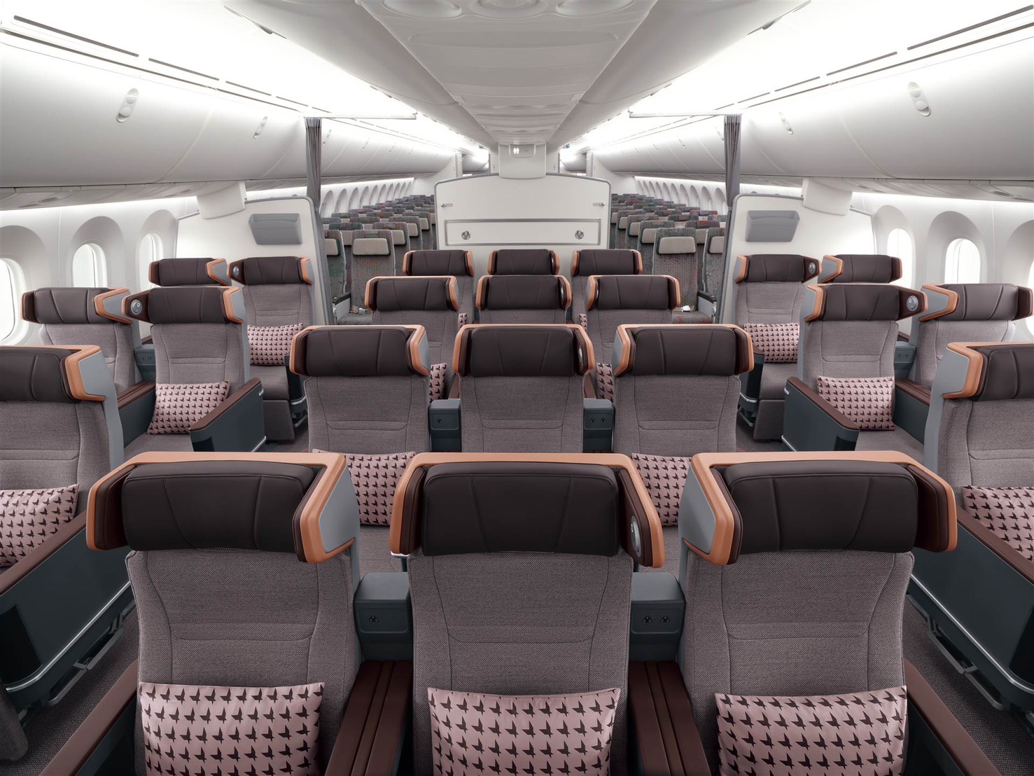 長榮航空第四代豪華經濟艙配置於波音787-9,把設計理念從「經濟艙升級」再提升為「類比商務艙」的規格,共設有 28 席座位,採 2-3-2 座位配置,前後椅距達 42 英吋,椅背後傾採用搖籃式座椅傾斜技術,以5英吋後傾實現等同於8英吋的舒適角度。同時,座椅設計強調更好的隱密性,增設頭靠兩側隱私隔板,搭配專屬閱讀燈增添旅客使用的便利性。不僅如此,座椅的頭靠、扶手及腳靠皆採用皮革包覆,塑造舒適感與高級質感兼具的搭乘體驗,扶手內側的大型收納空間、椅背螢幕下方儲物空間,及專屬的水瓶架,方便旅客收納和取用隨身物品。另配有 15.6 吋高畫質螢幕、餐桌提供個人行動裝置放置架,以及 110V AC 與 USB 複合式插座,滿足長程飛行中多元使用需求。