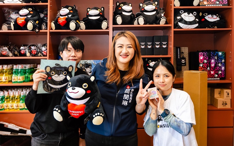 觀光局進一步指出,近年積極推動高雄熊擔任城市觀光大使,參與國內外旅展、海外觀光推介會、國際活動及大型節慶,累積高度人氣與曝光度。除持續與高雄在地優質商家聯名開發高雄熊周邊或聯名商品,如維格餅家、巴特里烘焙、中外餅舖、志斌豆瓣醬、純新烘焙事業、中華滷味博物館、不二緻果等,強化MIT台灣製造、在地生產,拓展多元銷售通路;亦已進駐高雄圓山大飯店,同時也與多家高雄飯店旅宿及旅行社洽談合作,讓高雄城市IP深入觀光產業鏈,提升整體附加價值。此外,高雄熊城市商品除今開幕之蓮池潭新據點,還可在高雄駁二、衛武營,以及台北、台南、屏東實體門市選購,同時也有網路商店(https://reurl.cc/yKGL82)。