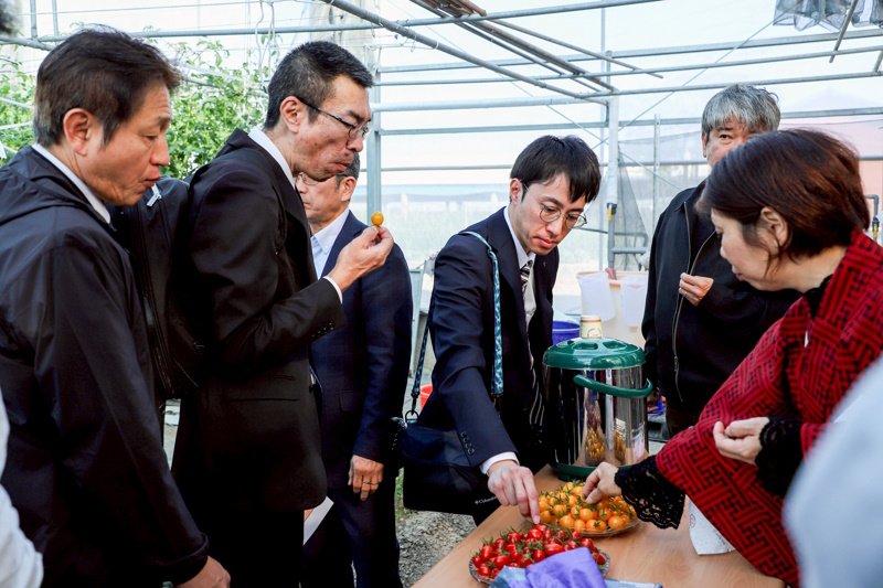 日本山口縣農林水產部長岡本章生率考察團赴嘉義縣展開3天的農業技術交流,今(14)日由嘉義縣長翁章梁親自接待,考察團參訪太保市「一蕃賞」溫室,採摘玉女小番茄與糖馨小番茄(台農2號),鮮美口感讓日本友人讚不絕口。