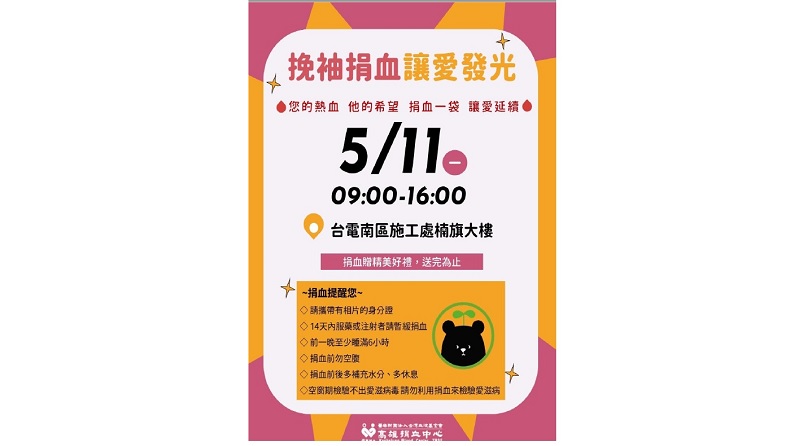 熱血再出發 台電南區施工處號召民眾捐血守護生命